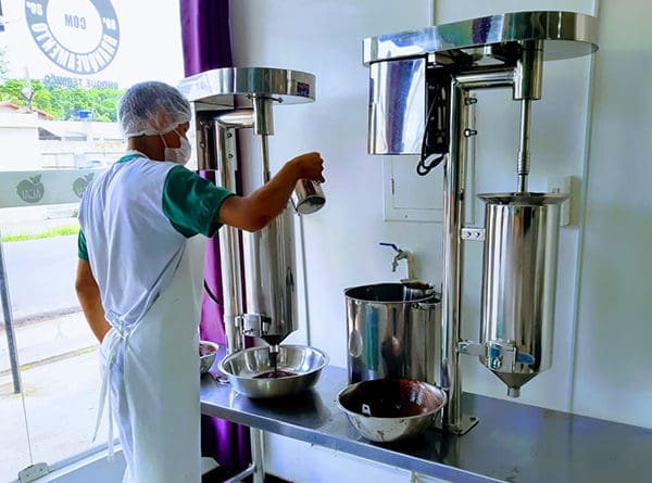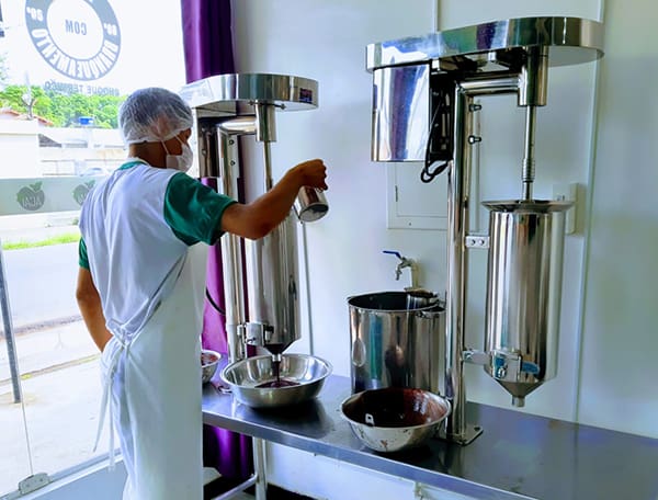 Depoimento do casal Robert Anderson Pereira de Araújo e Maria Cecília Ramos Araújo: “Antes de abrirmos o nosso negócio, fomos em busca de conhecimento técnico e prático. Através de uma indicação fomos até a Embrapa, e aprendemos a maneira correta de trabalhar com o açaí. Desde o início tivemos a consciência de que vidas estão em jogo nesse mercado. De que as Boas Práticas de Fabricação (BPF) são indispensáveis.