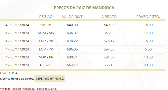📲 Entre no grupo do WhatsApp da Domínio Rural e receba informações em primeira mão sobre o mercado de mandioca e outros produtos agrícolas.