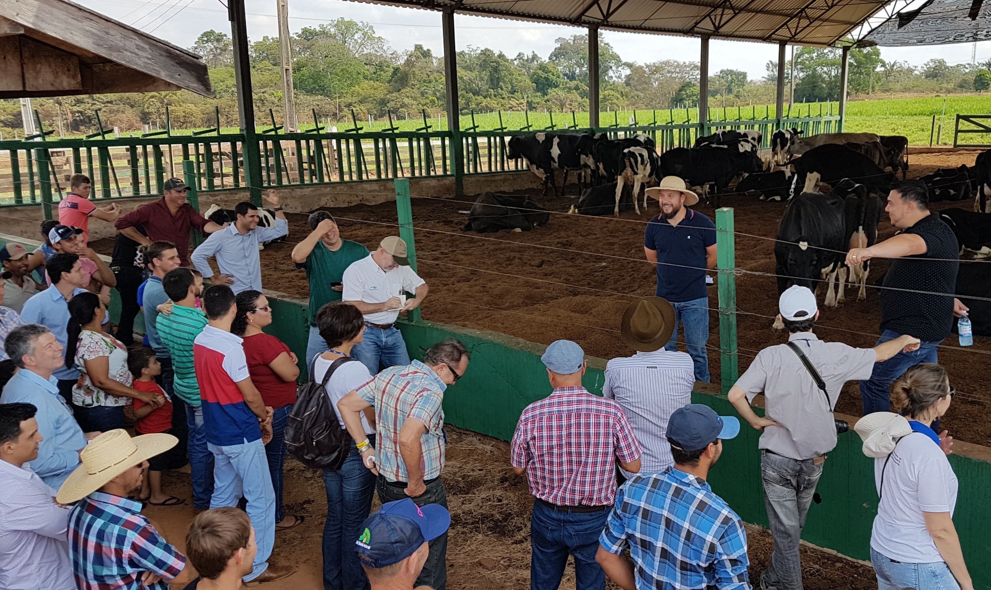 Além de produtores familiares, o Balde Cheio acolhe parceiros do sistema empresarial rural. No município de Cacoal, a comitiva visitou a primeira propriedade do Brasil a adotar o sistema de Compost Barn a pasto aberto, área para descanso de vacas leiteiras que tem como base uma cama de serragem e esterco compostado, tecnologia que proporciona ambiente seco e conforto térmico para os animais. O produtor Juan Travain, parceiro do projeto desde 2015, também investiu em métodos de manejo de pastagens recomendados e na adequação da dieta alimentar do rebanho leiteiro. Como resultado, em três anos, a produção aumentou 370%, saindo de 280 litros de leite/dia para 1.020 litros diários, utilizados na fabricação de derivados do leite, na agroindústria instalada na própria fazenda.
