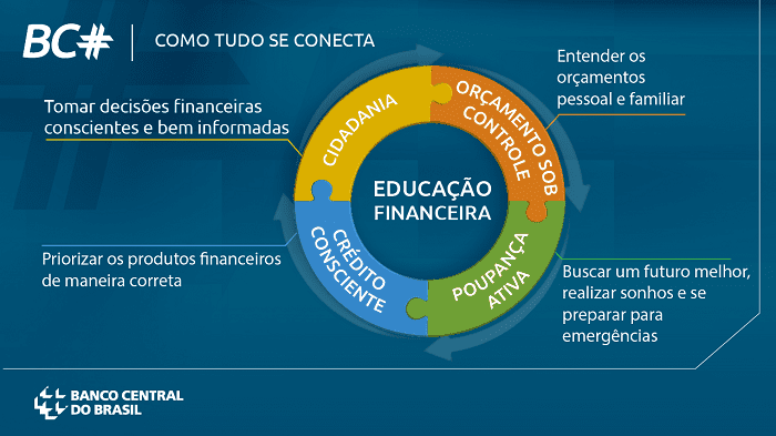 Uma das dimensões da Agenda BC#, pauta de trabalho centrada na evolução tecnológica para desenvolver questões estruturais do sistema financeiro, é a educação financeira. Nesse sentido, o Banco Central conta com uma série de iniciativas para conscientização do cidadão para que todos participem do mercado e cultivem o hábito de poupar. A ideia básica é fazer girar uma roda virtuosa composta por conceitos de cidadania financeira, orçamento sob controle, crédito consciente e poupança ativa. O desenvolvimento dessa cidadania tem como objetivo tornar os cidadãos mais cientes dos riscos e oportunidades financeiras.