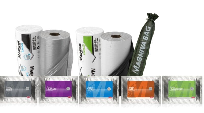Para iniciar a proteção nos silos, a companhia leva aos produtores o Magniva O2 Block, um filme barreira ao oxigênio de alto desempenho. O produto apresenta em sua composição o copolímero de Etileno Vinil Álcool (EVOH), que é a opção de última geração e maior eficiência presente no mercado hoje comparativamente aos demais produtos disponíveis.