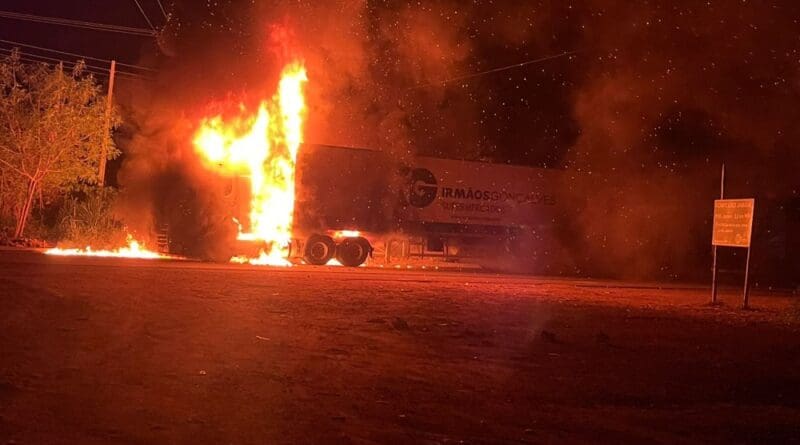 Read MoreUma carreta câmara fria do grupo Irmãos Gonçalves que estava parada em um bloqueio na BR 364, próximo a entrada