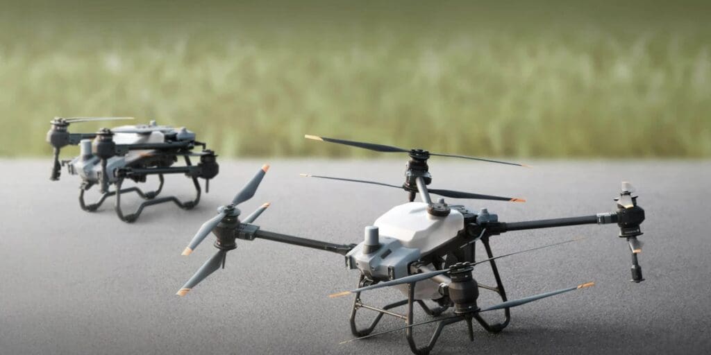 Os drones mais recentes da DJI, Agras T40 e Agras T20P, são voltados para cultivadores. Os drones de alta resistência são otimizados para cenários de aplicação agrícola, como pulverização de precisão, espalhamento, levantamento aéreo e mapeamento.