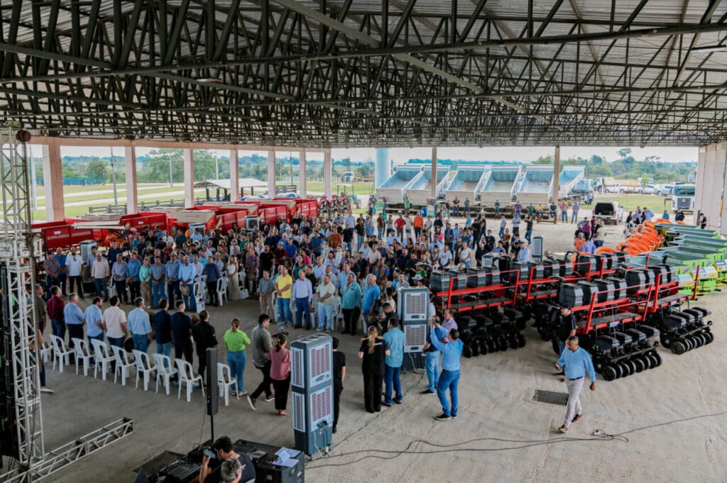 A entrega histórica de cerca de 200 equipamentos e maquinários realizada pelo governo de Rondônia no Centro Tecnológico Vandeci Rack, em Ji-Paraná, busca apoiar o desenvolvimento da agricultura familiar, fortalecer a cadeia produtiva do estado e garantir mais eficiência e produtividade no campo. São plantadeiras, distribuidores de calcário, roçadeiras, vagões, caminhões pipa, caminhão basculantes e retroescavadeiras, que juntos, formam uma frota agrícola que beneficia 49 municípios, levando desenvolvimento a diversas regiões.