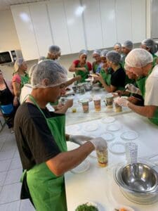 No dia 20, às 11h, haverá uma aula prática sobre alimentação saudável com a montagem de saladas de pote, usando ingredientes locais como batata doce e gengibre, e um suco refrescante de laranja, cenoura, manga e gengibre. Às 15h, o curso focará em pães caseiros, com receitas de pão de batata doce com queijo cremoso e um chá de casca de abacaxi com gengibre. No dia 21, a programação se repete, permitindo que ainda mais participantes tenham a chance de aprender e degustar as preparações. “Cada ação que promovemos tem o objetivo de capacitar pessoas e fortalecer o empreendedorismo social”.