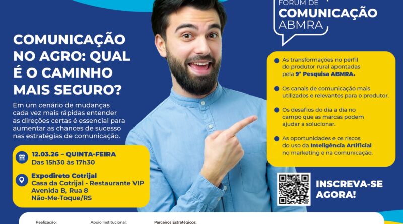 Entender com profundidade quem é o produtor rural e como ele consome informação é o ponto de partida para as marcas que querem se manter relevantes no agro. Com esse foco, a Associação Brasileira de Marketing Rural e Agro (ABMRA) realiza, no dia 12 de março, quinta-feira, às 15h30, o Fórum de Comunicação ABMRA durante a Expodireto Cotrijal, na Casa da Cotrijal, em Não-Me-Toque (RS). O encontro discutirá como dados qualificados podem transformar estratégias de comunicação em resultados concretos no campo.
