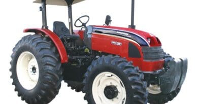 A proteção do motor por fibra, associada às novas vedações em couro aeronáutico, evita a entrada de palha, aumentando a segurança operacional. Outro diferencial é o “boné” (prolongador dianteiro da caixa de carga), ampliado na parte dianteira e traseira para reduzir acúmulo de palhas entre a cabine e o implemento, o que também otimiza o tempo de parada para revisão de área. As bolsas pneumáticas com maior pressão completam o pacote de melhorias, garantindo mais eficiência ao sistema.