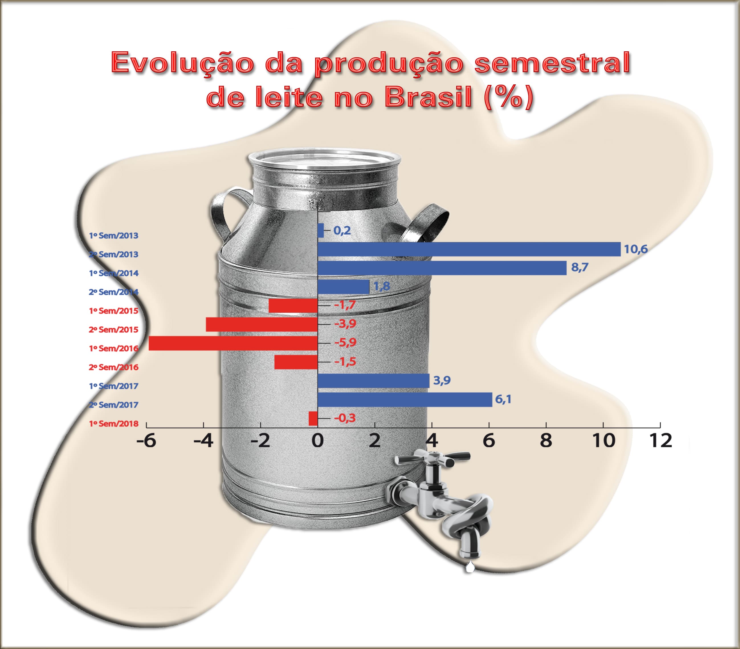 A produção de leite sob inspeção no Brasil fechará 2018 com crescimento próximo de 0%, segundo projeta o Núcleo de Desenvolvimento Socioeconômico da Embrapa Gado de Leite (MG). O setor fechou o primeiro semestre deste ano registrando uma queda de produção da ordem de 0,3%, comparado ao mesmo período de 2017. Entre os fatores que contribuíram para o resultado ruim estão a greve dos caminhoneiros e o aumento dos custos de produção. “Em maio, quando ocorreu a greve, registrou-se o pior índice que se tem notícia para um único mês, com a produção ficando 9,3% mais baixa que o ano anterior”, diz o pesquisador da Embrapa Glauco Carvalho. Esse número revela que deixaram de ser captados 176,7 milhões de litros de leite.