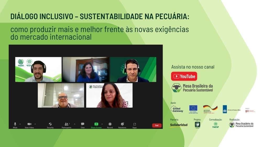 O tema foi debatido na quinta-feira, 06/11, durante o evento online “Diálogo Inclusivo – Sustentabilidade na Pecuária: como produzir mais e melhor frente às novas exigências do mercado internacional”, promovido pela Mesa Brasileira da Pecuária Sustentável, em parceria com a Federação da Agricultura e Pecuária do Estado de São Paulo (FAESP) e a Fundação Solidaridad.