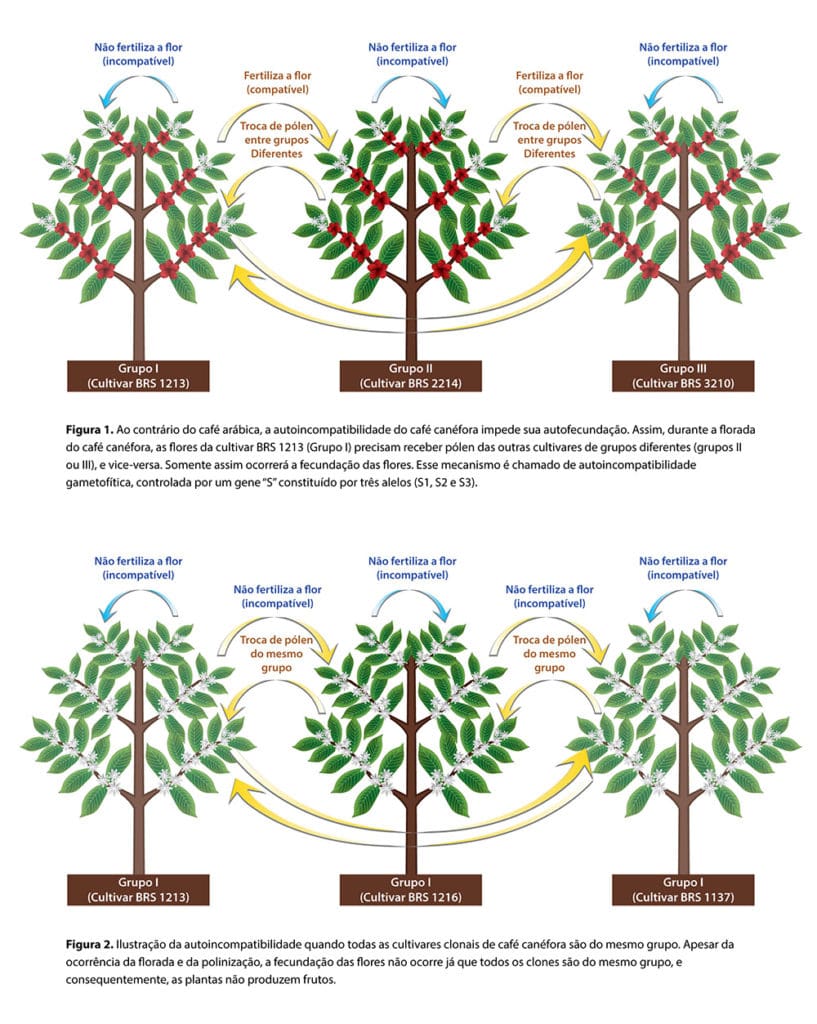 O produtor também é informado sobre a compatibilidade entre os clones. Isso porque o café da espécie Coffea canephora, que reúne as variedades conilon e robusta, necessita de plantas com perfis genéticos diferentes para produzir frutos. Sem essa informação, o cafeicultor costuma plantar diversos materiais para aumentar as chances de cruzamento. O cultivo de clones não compatíveis não produz frutos e o plantio de um reduzido número de clones diminui a eficiência de polinização. Os clones lançados estão classificados em três grupos de compatibilidade. Com isso, o agricultor saberá de antemão quais podem ser plantados juntos, economizando tempo e otimizando o desempenho produtivo.