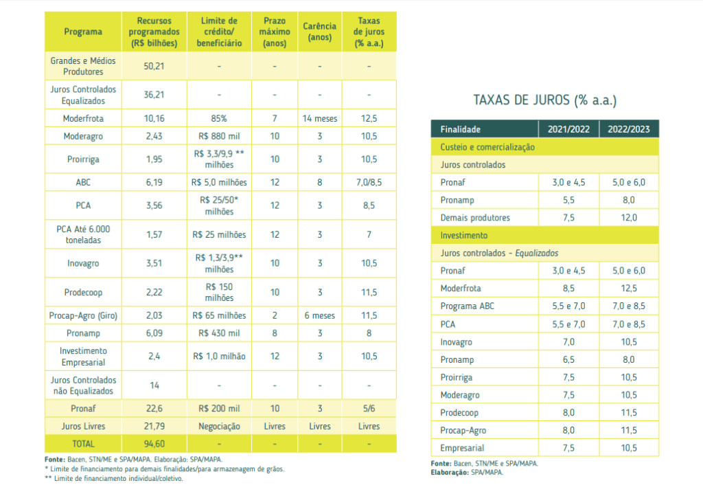 Os recursos disponibilizados no âmbito do Pronaf e do Pronamp são integralmente a taxas de juros controladas.
