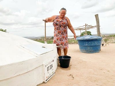 “Eu estou me sentindo muito feliz. Antes a gente carregava água das barragens para consumir, mas hoje temos a nossa própria cisterna”, comemora a dona Maria Quitéria, beneficiária do Programa das Cisternas.