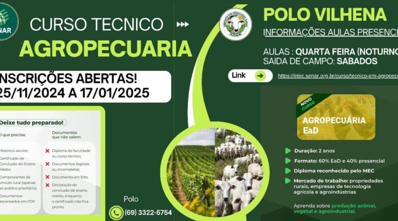 Read MoreO Sindicato dos Produtores Rurais de Vilhena, em parceria com o Serviço Nacional de Aprendizagem Rural (Senar), anuncia a abertura