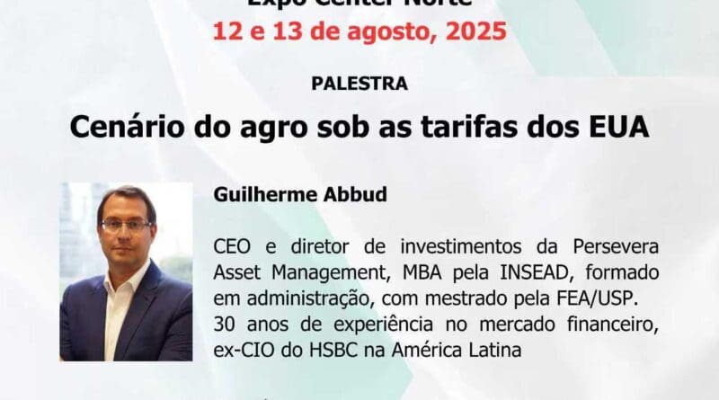 O impacto das tarifas dos Estados Unidos sobre o comércio global e o realinhamento do Brasil em direção à China estarão no centro do debate conduzido pelo CEO e diretor de Investimentos da Persevera Asset Management, Guilherme Abbud, durante o 16º Brasil AgroChemShow. O evento internacional do setor de agroquímicos, fertilizantes e bioinsumos será realizado nos dias 12 e 13 de agosto, no Expo Center Norte, em São Paulo.