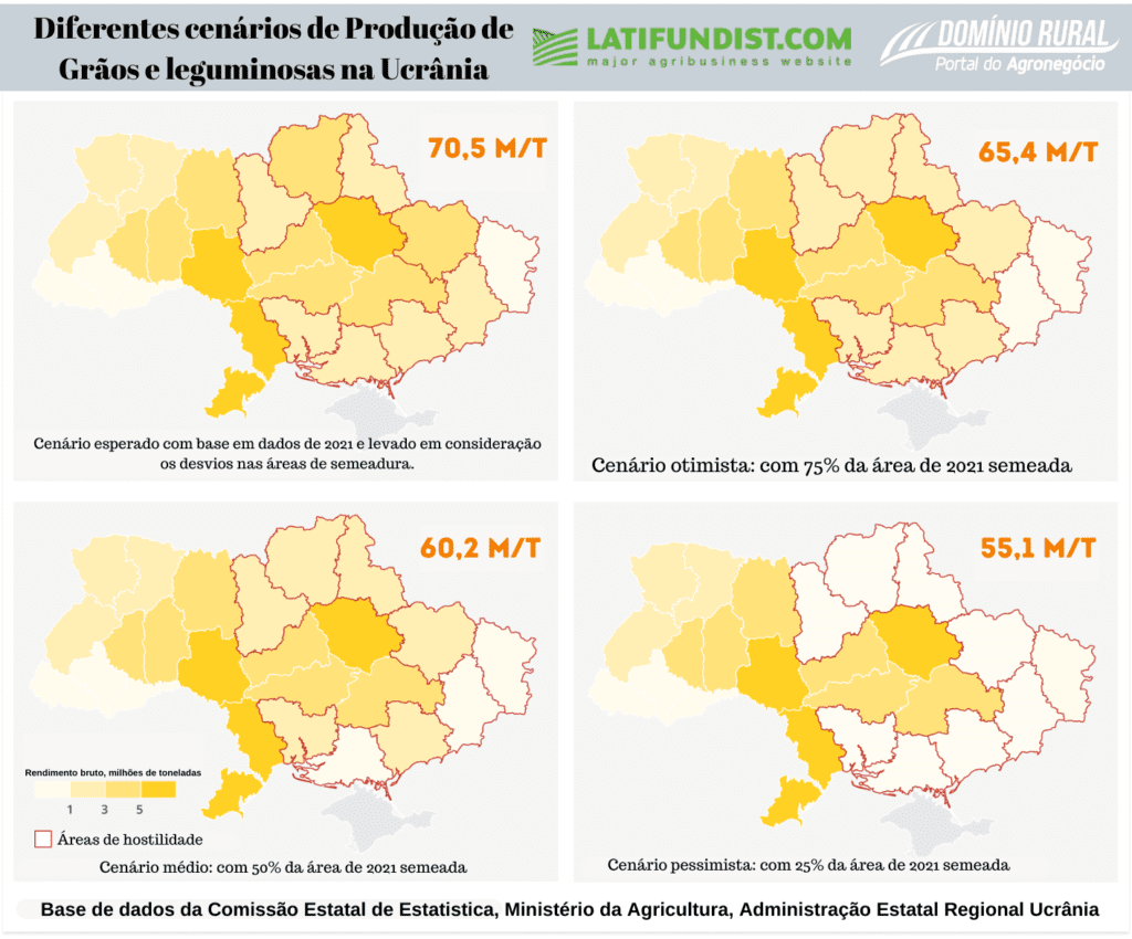 Cenários de campanha de plantio de culturas de primavera na Ucrânia em 2022, com base na quantidade de terras agrícolas acessíveis